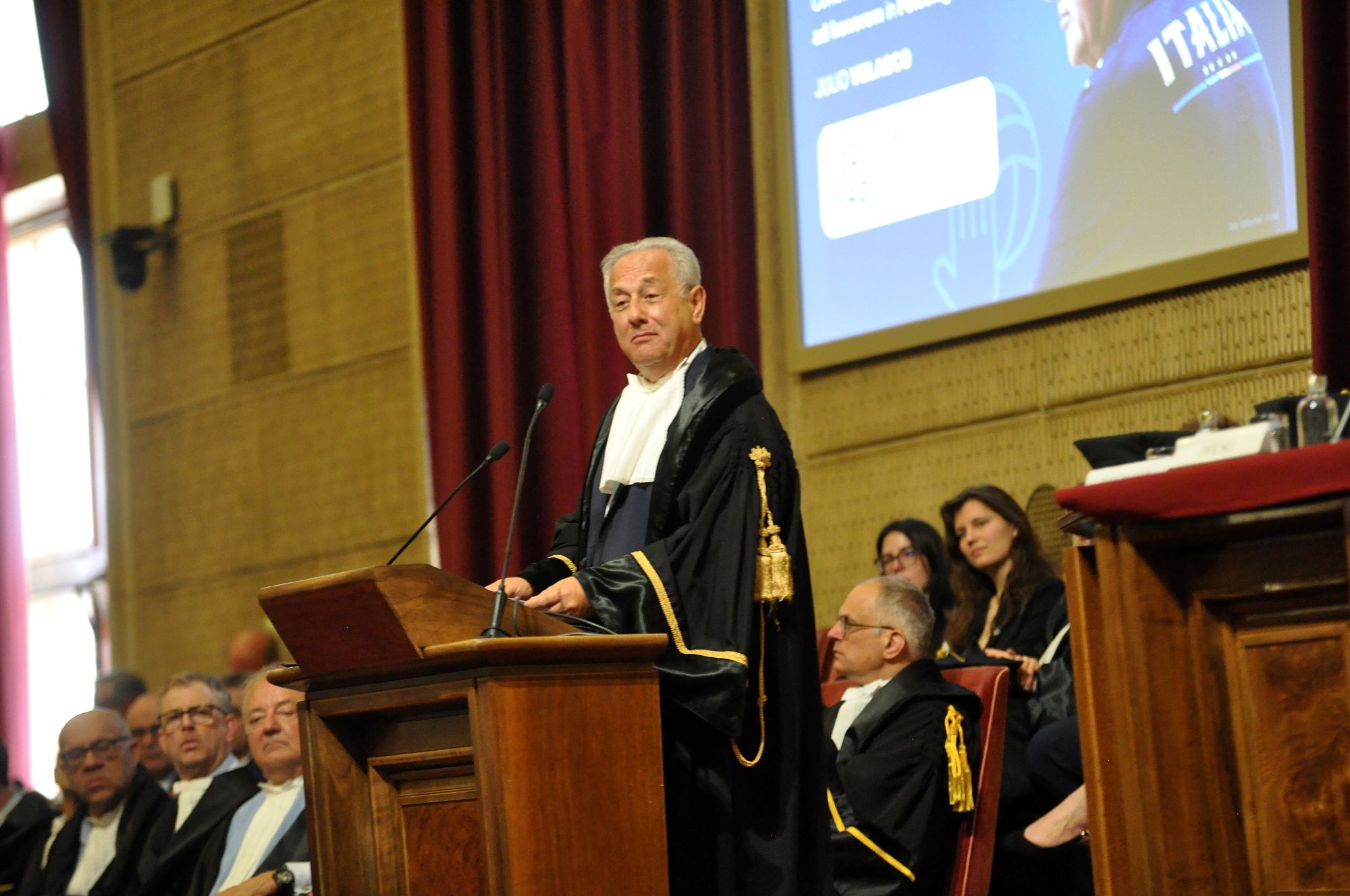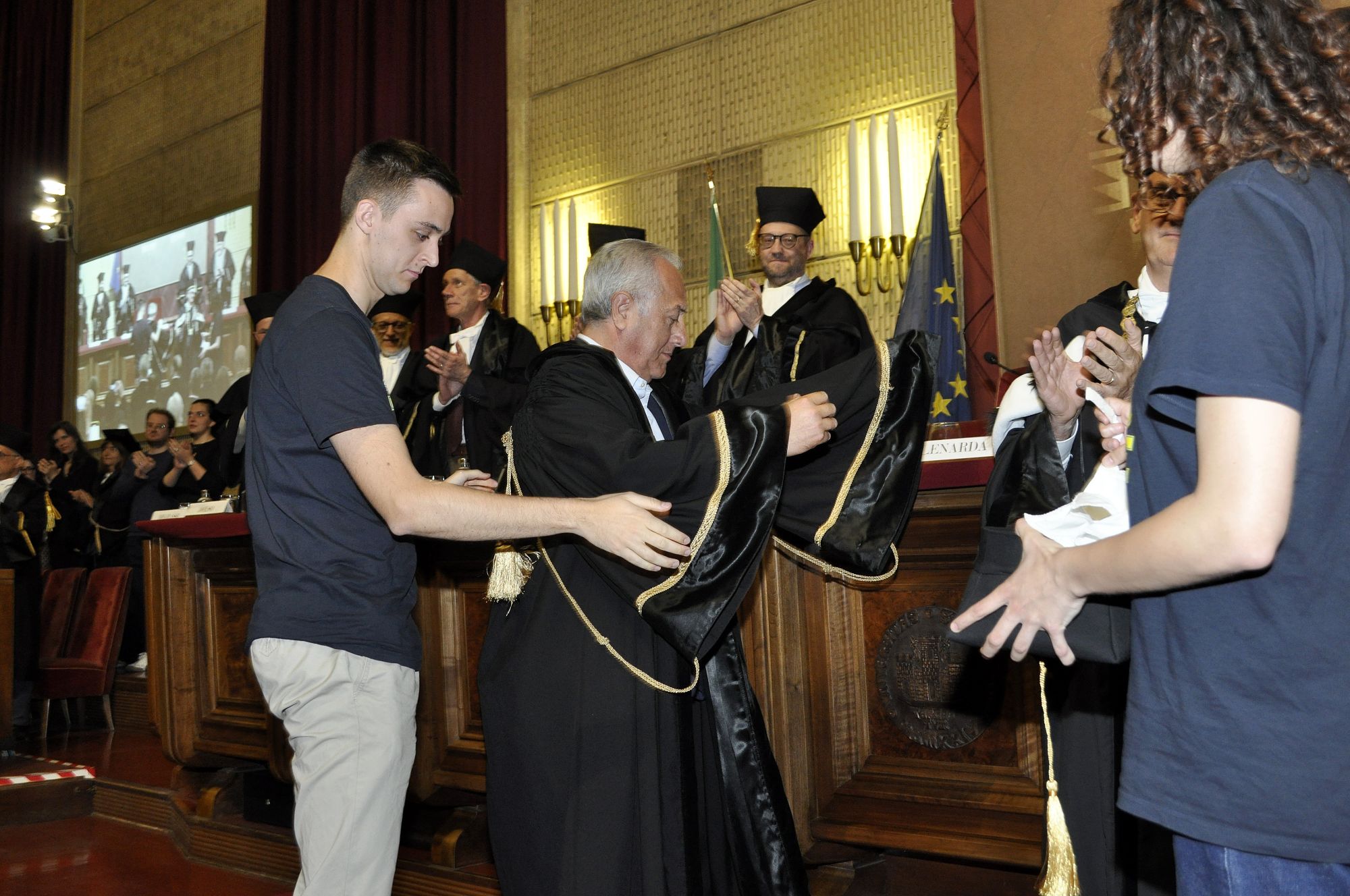 La cerimonia si è svolta in un’Aula Magna gremita, grazie anche all’ampia partecipazione del mondo delle federazioni e dell’associazionismo sportivo – testimonianza dello straordinario impatto culturale che il tecnico originario di La Plata ha avuto nel suo ambito e di ciò che rappresenta, in termini di immagine, mentalità e innovazione, per l’intero movimento sportivo italiano.