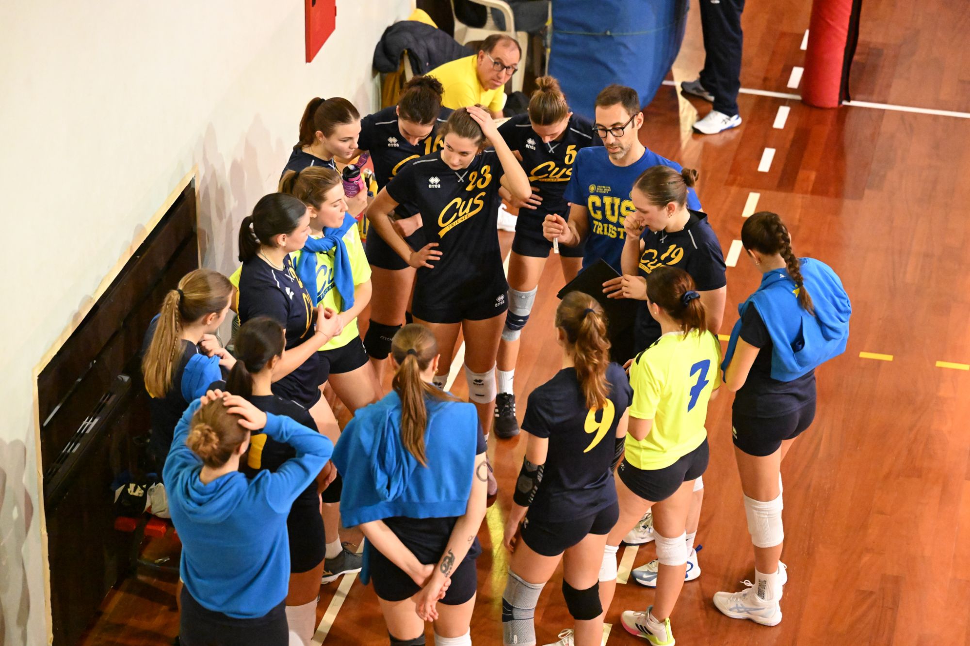 Nella 4ᵅ Giornata del Campionato Territoriale di Prima Divisione Femminile il CUS Trieste affronta in trasferta il Volley Club, una delle squadre in lotta per la zona alta della classifica. Il coach Vivona schiera Giulia Vescovi in palleggio, Marta Tomasella come opposto, Letizia Maffi e Silvia Cestaro in banda, Capitan Irene Mullig e Hana Lapic al centro e il libero Isabella Ramani.