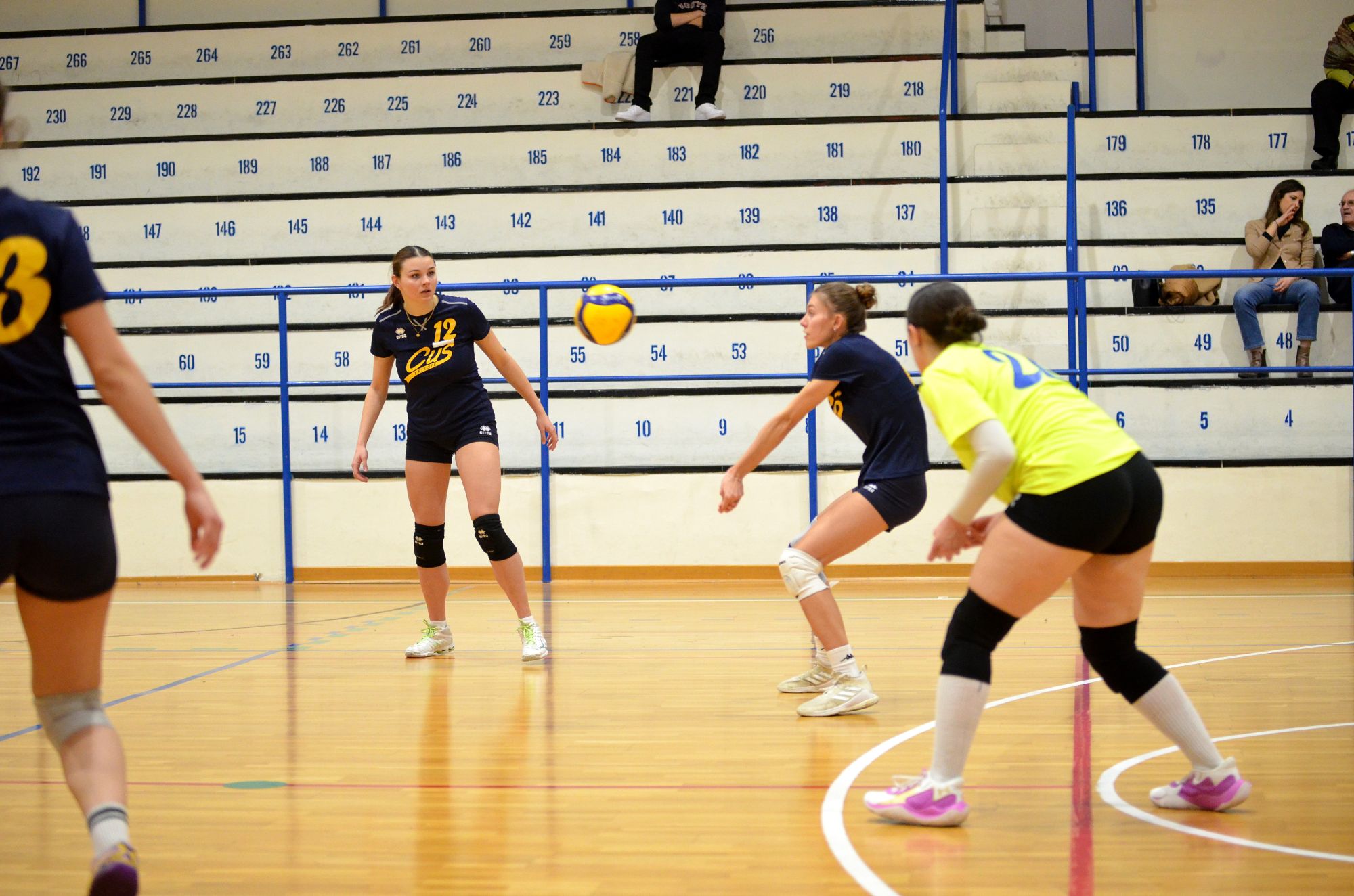 Nel terzo set le padrone di casa partono subito forte e si portano sul 3 – 0 ma le cussine rispondono prontamente, agganciando le avversarie sul 6 – 6. L’equilibrio continua fino al 9-9 quando le universitarie danno lo strappo decisivo al set portandosi sul 9 – 12, successivamente sul 13 – 16 ma poi le cussine scappano via chiudendo il set sul 17 – 25 e la partita sul 0 – 3.