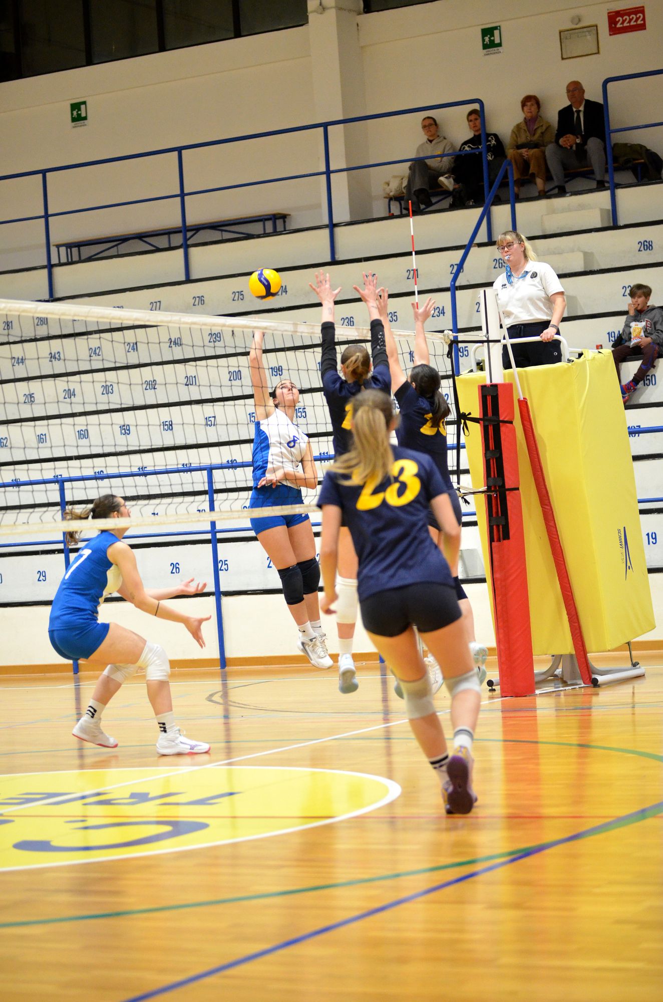 Nel secondo set coach Vivona ripropone la stessa formazione con un solo cambio: Sara Sain al posto di Silvia Cestaro. Le cussine partono bene portandosi avanti per 5 – 1 ma la reazione dell’Azzurra è immediata, si va sul 5 – 5. Questa volta è la capitana Irene Mullig che con una serie di battute efficaci a permettere alle cussine di scappare sul 14-5. Le cussine continuano a premere sull’acceleratore e grazie ad un ottimo Sara Sain raggiungono il vantaggio massimo sul 20 – 12. La reazione dell’Azzurra è tardiva ed il CUS Trieste si aggiudica anche il secondo set per 25 – 14.