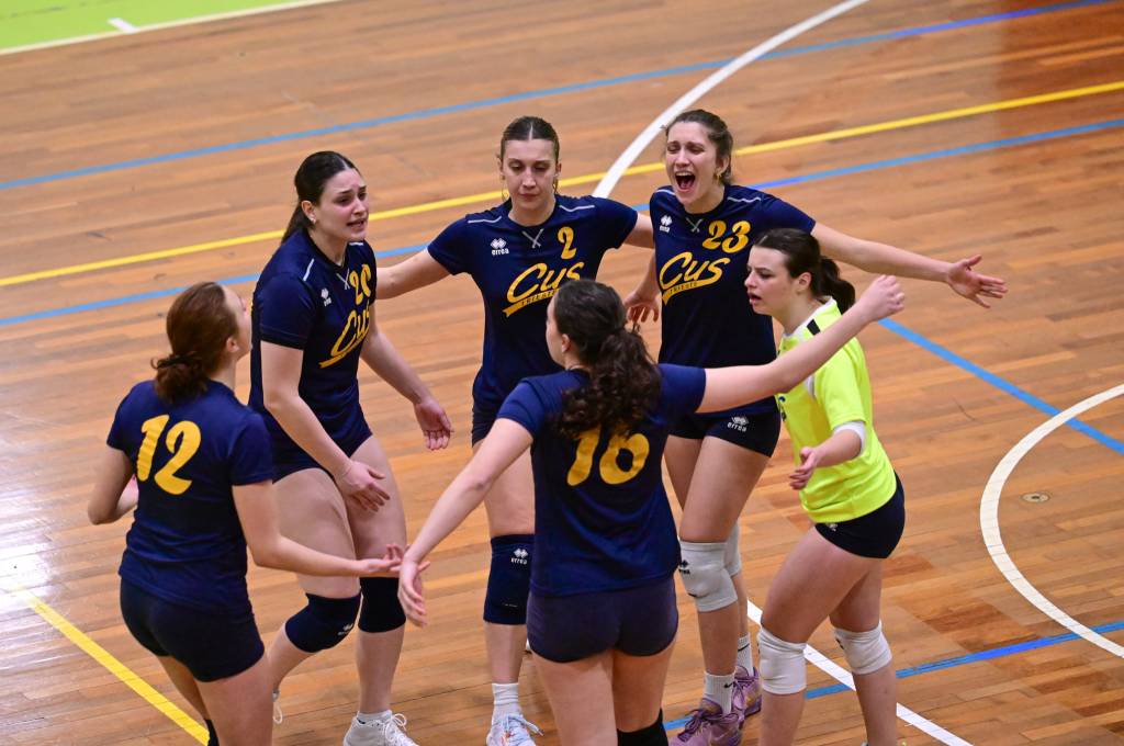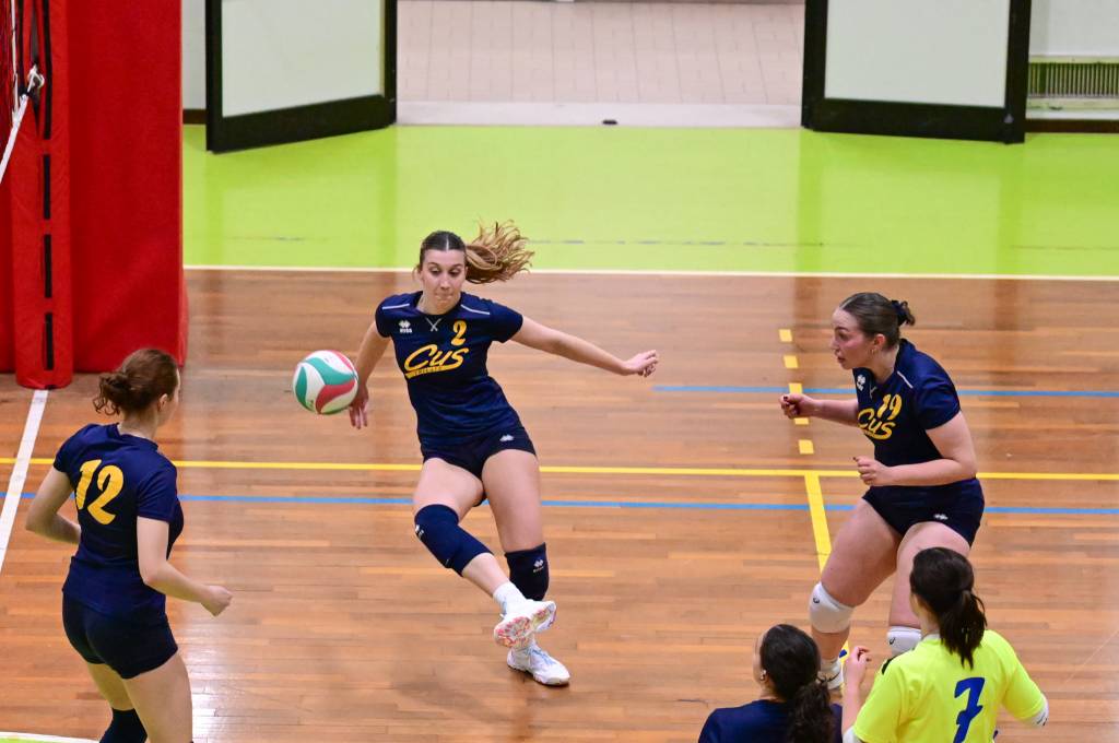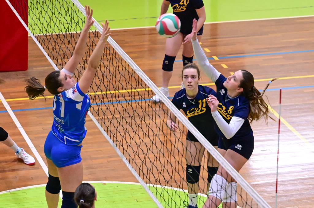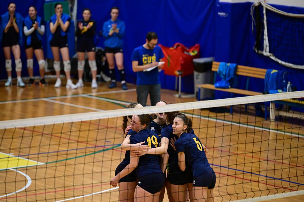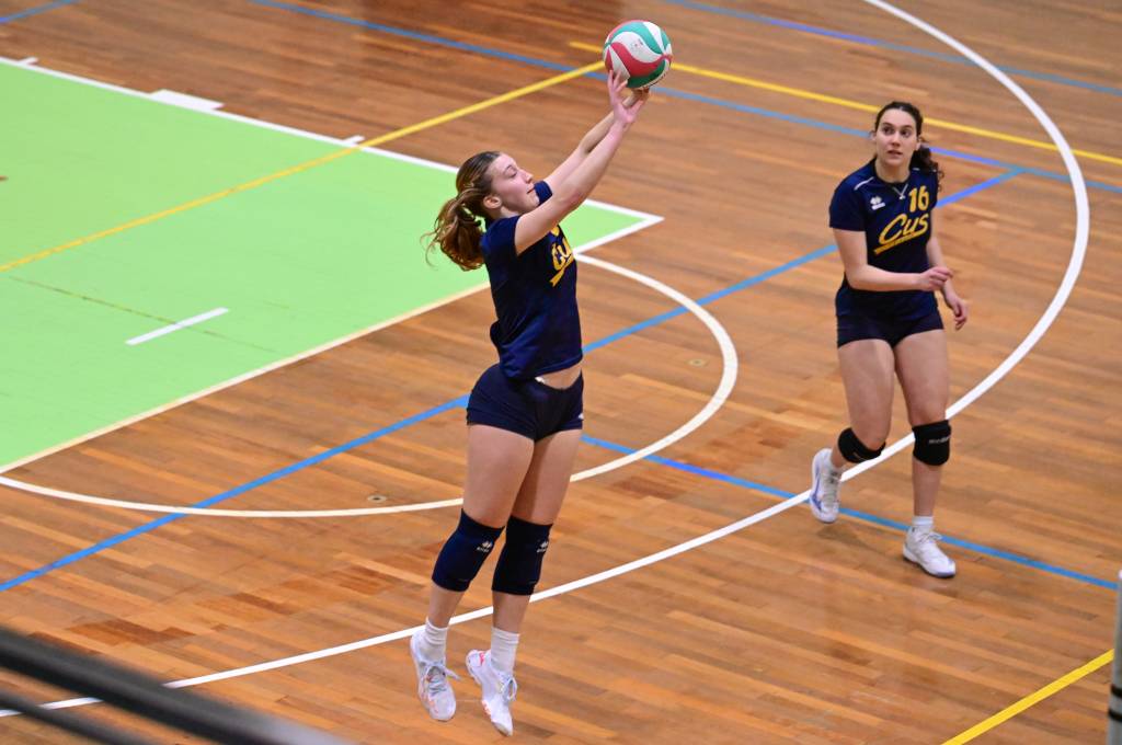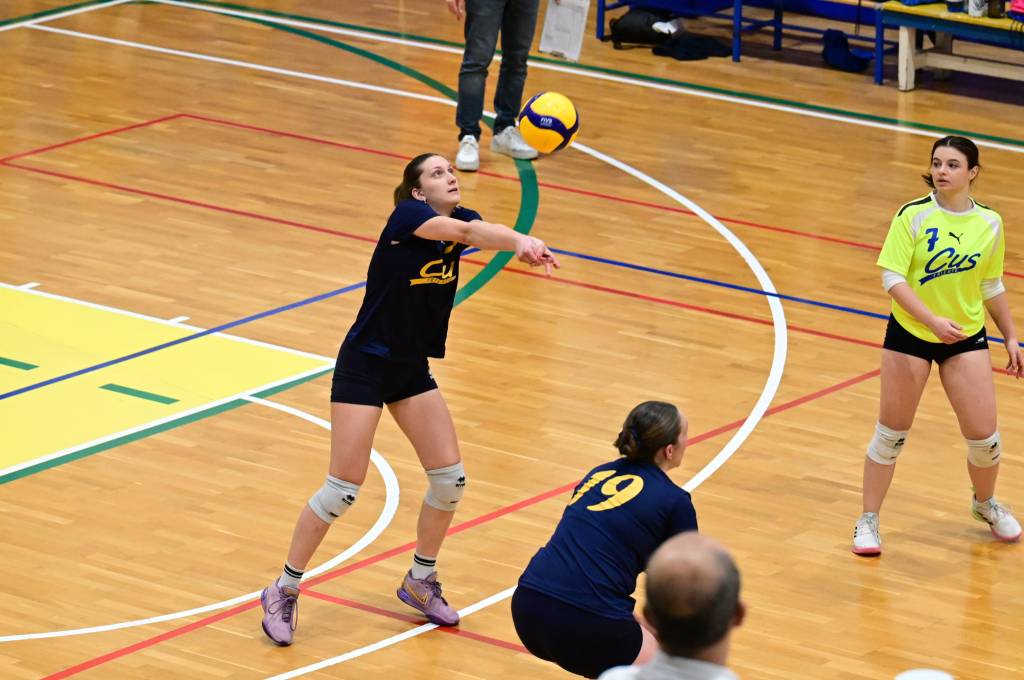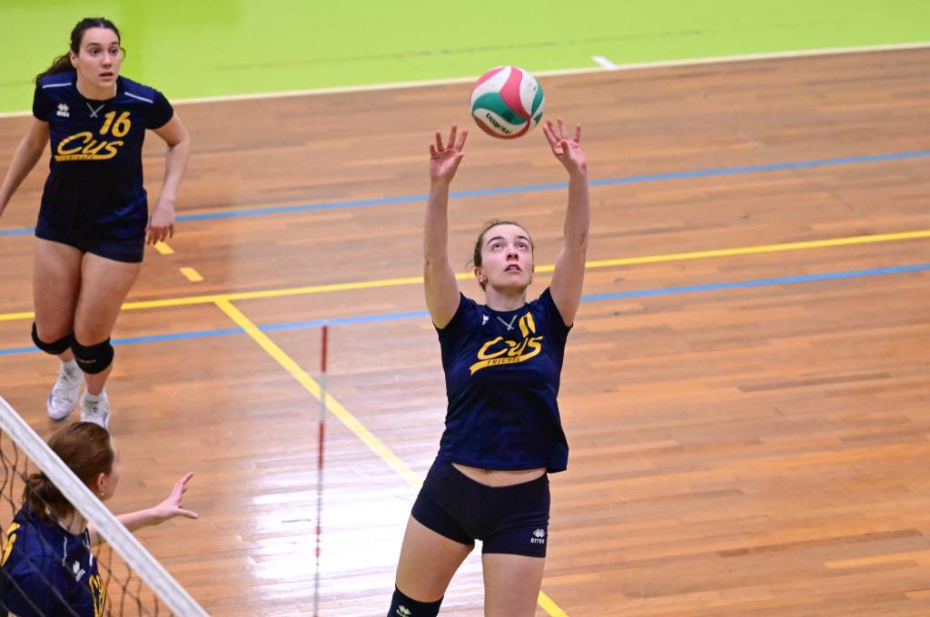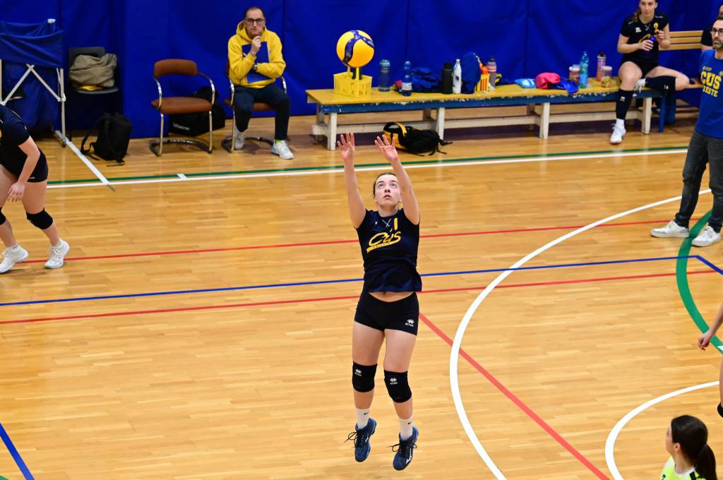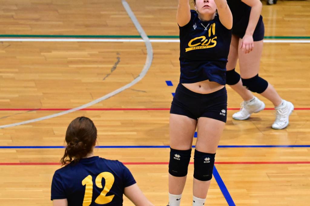 Nel secondo set c’è la partenza a razzo della Triestina che si porta sul 5 – 1 e costringe Coach Vivona a chiedere il suo primo time out. Le cose non cambiano e le padrone di casa continuano a dominare portandosi sul 9 – 2 e successivamente sul 12 – 4.. La partita va avanti a senso unico fino al 24 – 16 a favore della Triestina ma di colpo cambia tutto. Viviana Boria con un attacco dalla zona due conquista il 17° punto per il CUS che va al servizio.Le avversarie sembrano non poter reagire. Le universitarie si portano sul 25 – 24 ed hanno a disposizione il primo set ball ma la capitana Mullig commette un fallo di invasione portando le squadre sul 25 – 25. Le ragazze della Triestina vanno in battuta e con un net in servizio si portano sul 26 – 25 e poi, grazie ad un controattacco efficace, chiudono anche il secondo parziale sul 27 – 25.