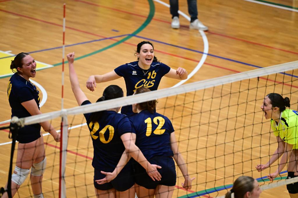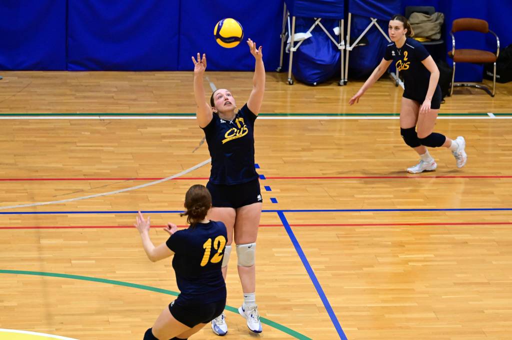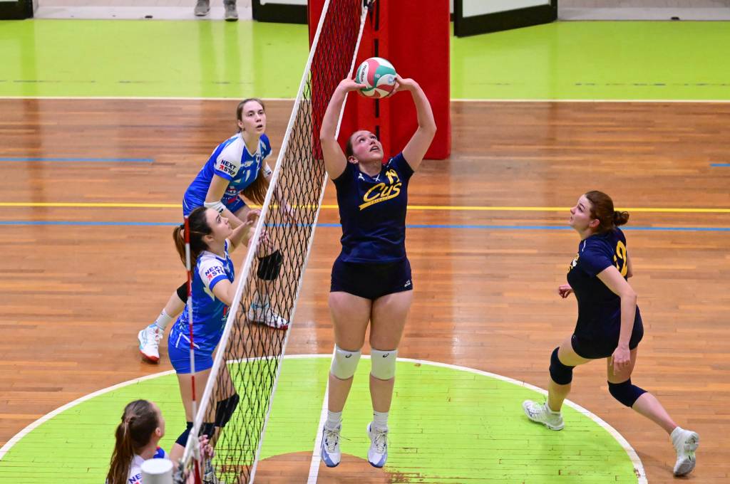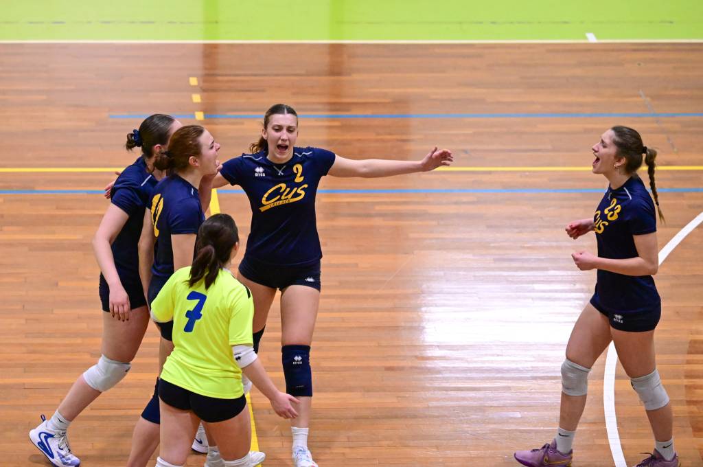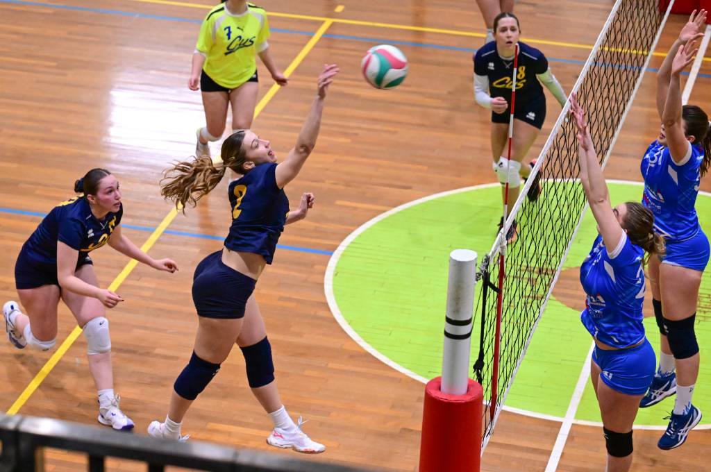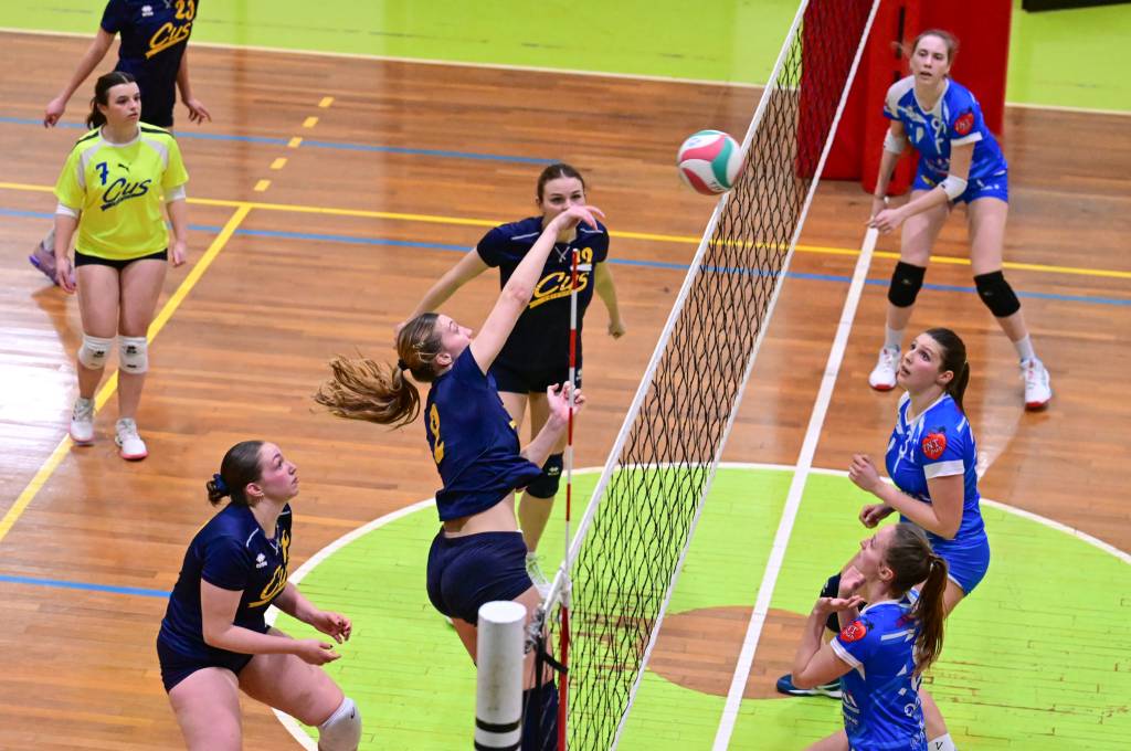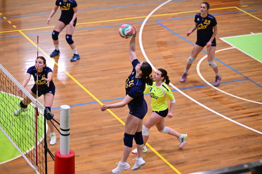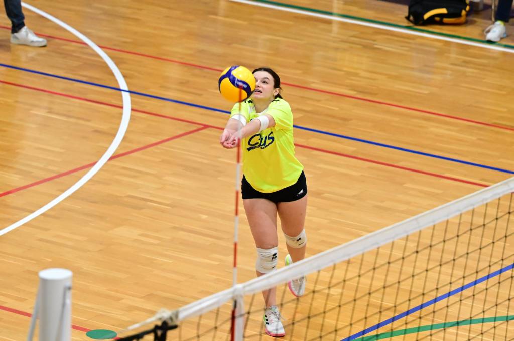 Nel secondo set c’è la partenza a razzo della Triestina che si porta sul 5 – 1 e costringe Coach Vivona a chiedere il suo primo time out. Le cose non cambiano e le padrone di casa continuano a dominare portandosi sul 9 – 2 e successivamente sul 12 – 4.. La partita va avanti a senso unico fino al 24 – 16 a favore della Triestina ma di colpo cambia tutto. Viviana Boria con un attacco dalla zona due conquista il 17° punto per il CUS che va al servizio.Le avversarie sembrano non poter reagire. Le universitarie si portano sul 25 – 24 ed hanno a disposizione il primo set ball ma la capitana Mullig commette un fallo di invasione portando le squadre sul 25 – 25. Le ragazze della Triestina vanno in battuta e con un net in servizio si portano sul 26 – 25 e poi, grazie ad un controattacco efficace, chiudono anche il secondo parziale sul 27 – 25.