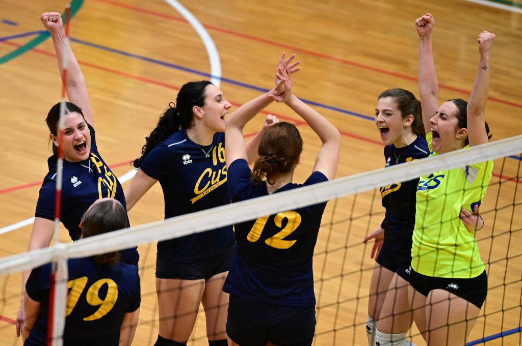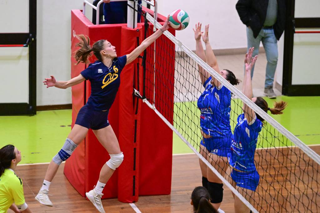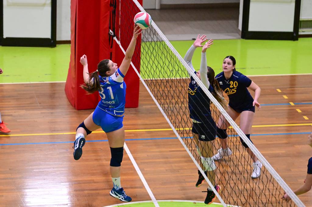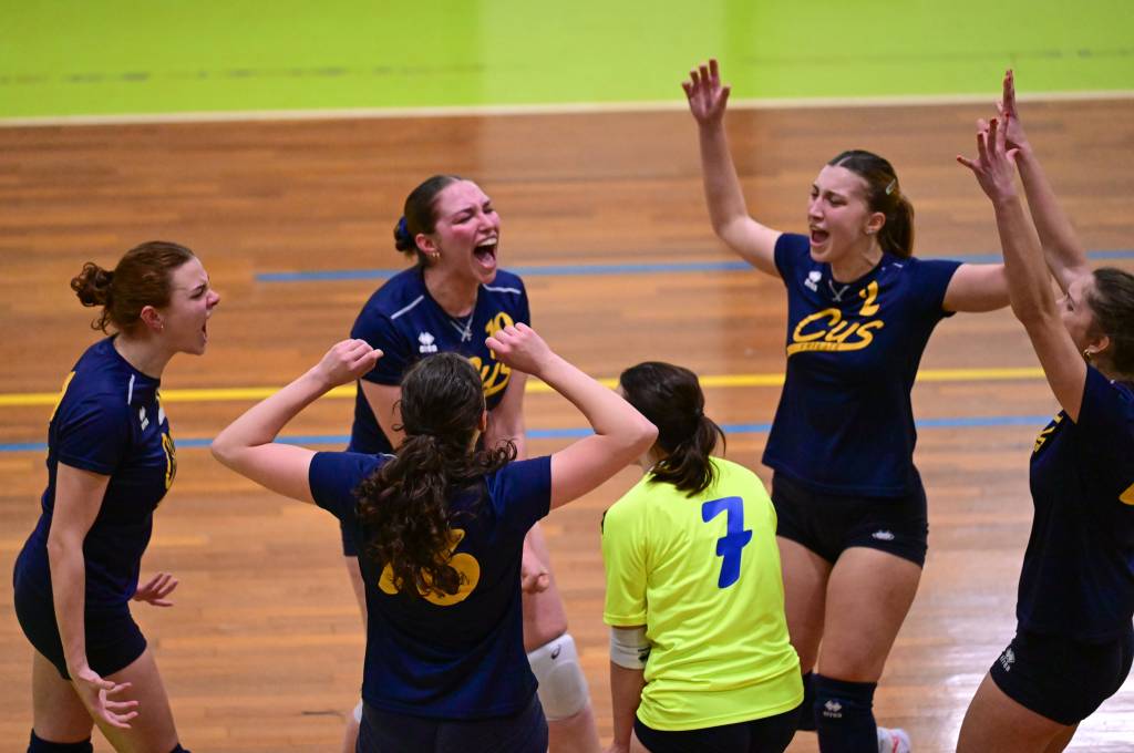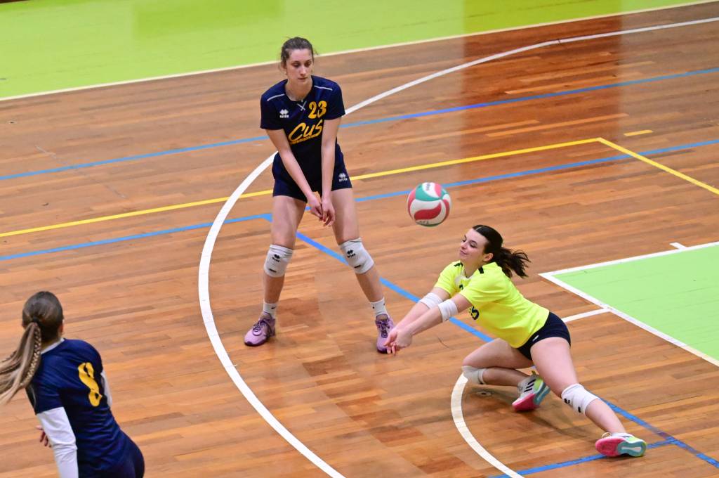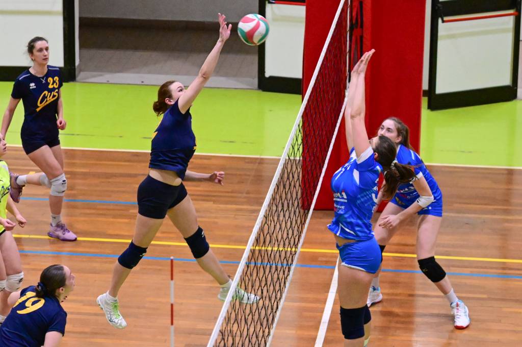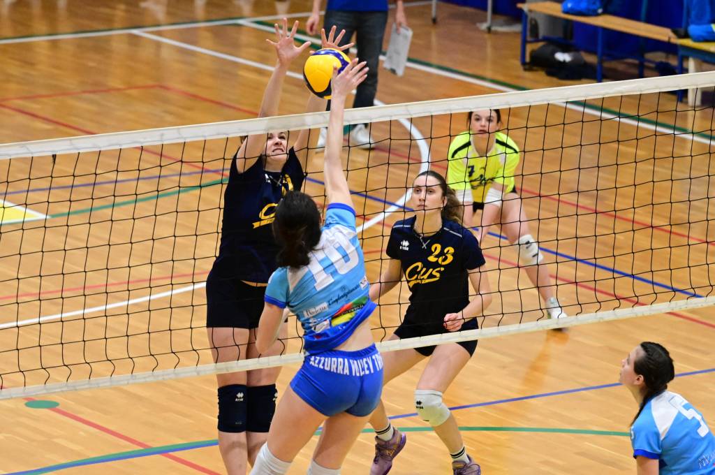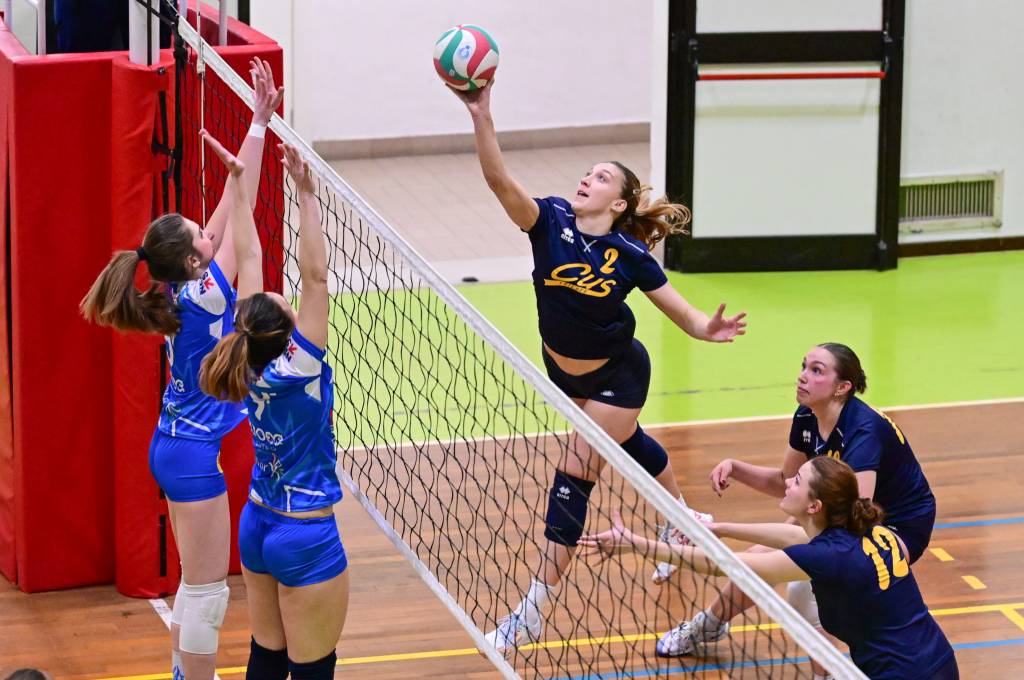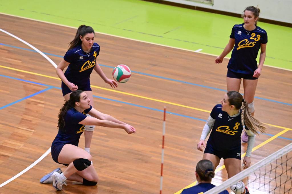 Nel secondo set c’è la partenza a razzo della Triestina che si porta sul 5 – 1 e costringe Coach Vivona a chiedere il suo primo time out. Le cose non cambiano e le padrone di casa continuano a dominare portandosi sul 9 – 2 e successivamente sul 12 – 4.. La partita va avanti a senso unico fino al 24 – 16 a favore della Triestina ma di colpo cambia tutto. Viviana Boria con un attacco dalla zona due conquista il 17° punto per il CUS che va al servizio.Le avversarie sembrano non poter reagire. Le universitarie si portano sul 25 – 24 ed hanno a disposizione il primo set ball ma la capitana Mullig commette un fallo di invasione portando le squadre sul 25 – 25. Le ragazze della Triestina vanno in battuta e con un net in servizio si portano sul 26 – 25 e poi, grazie ad un controattacco efficace, chiudono anche il secondo parziale sul 27 – 25.
