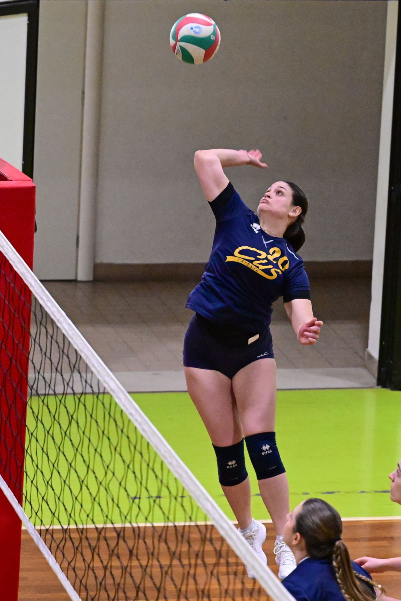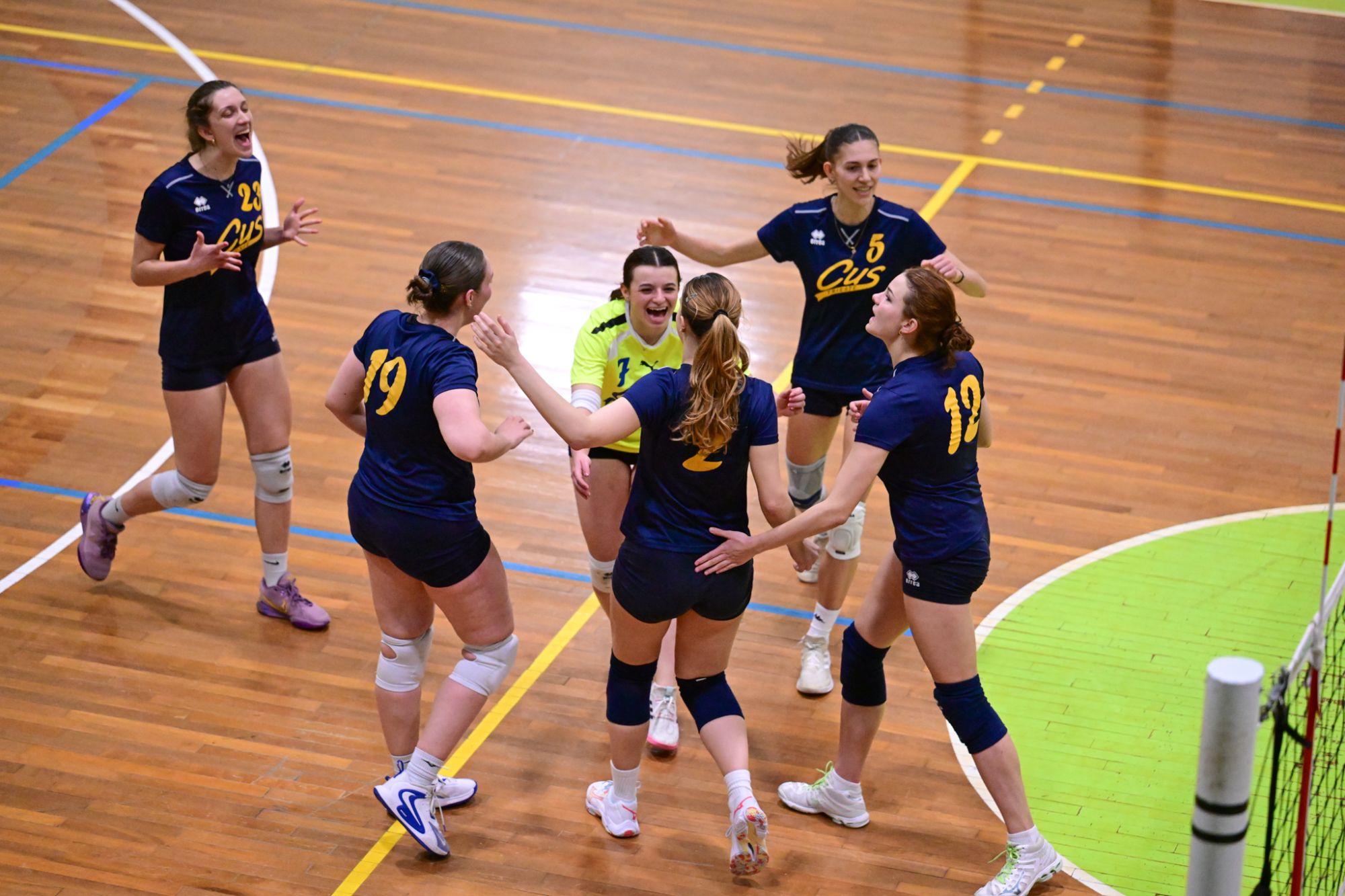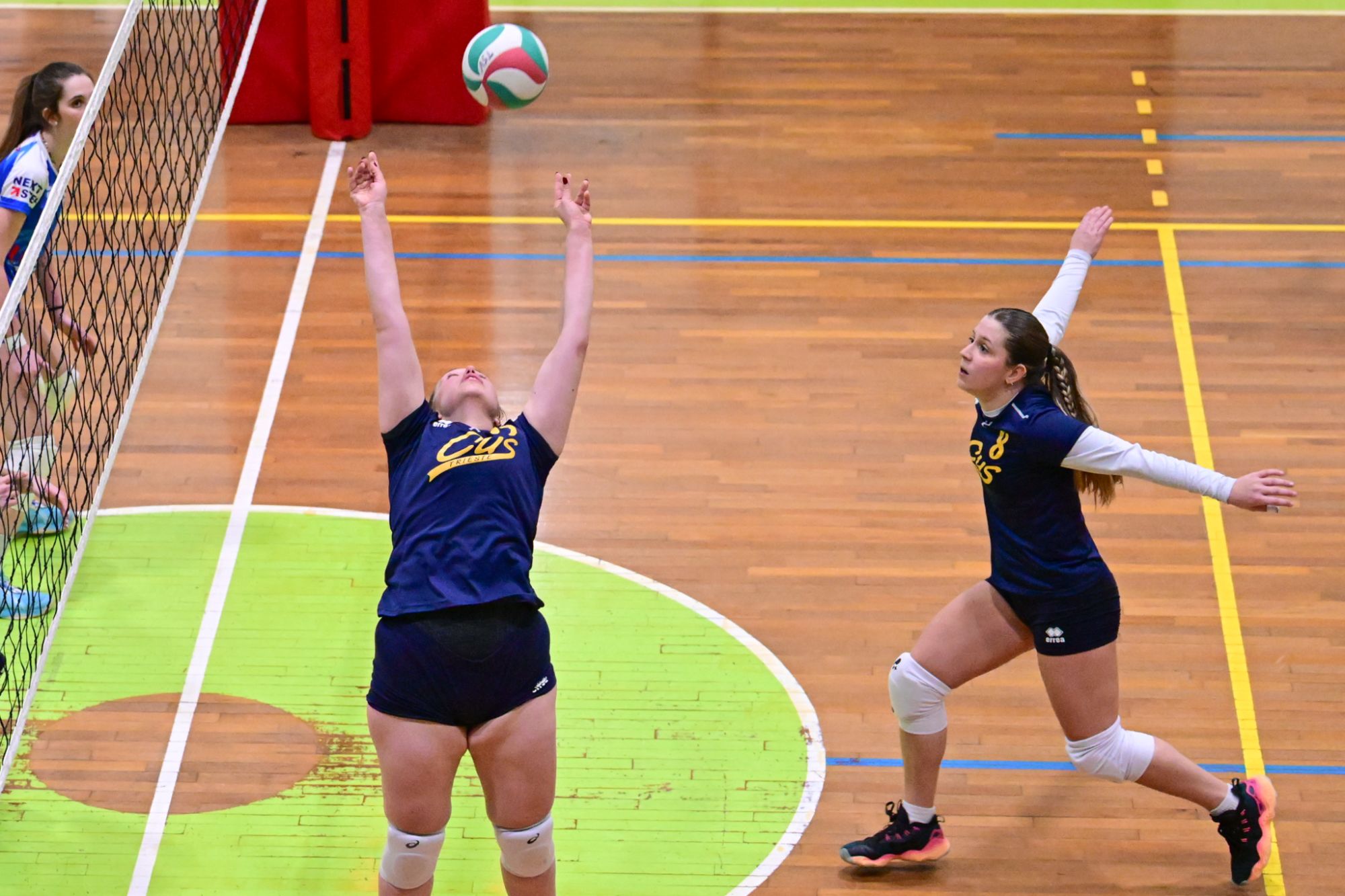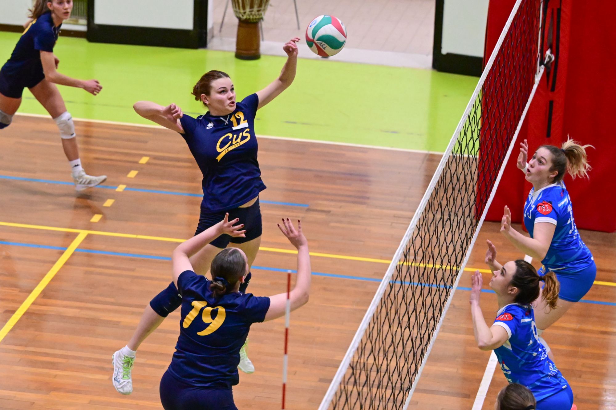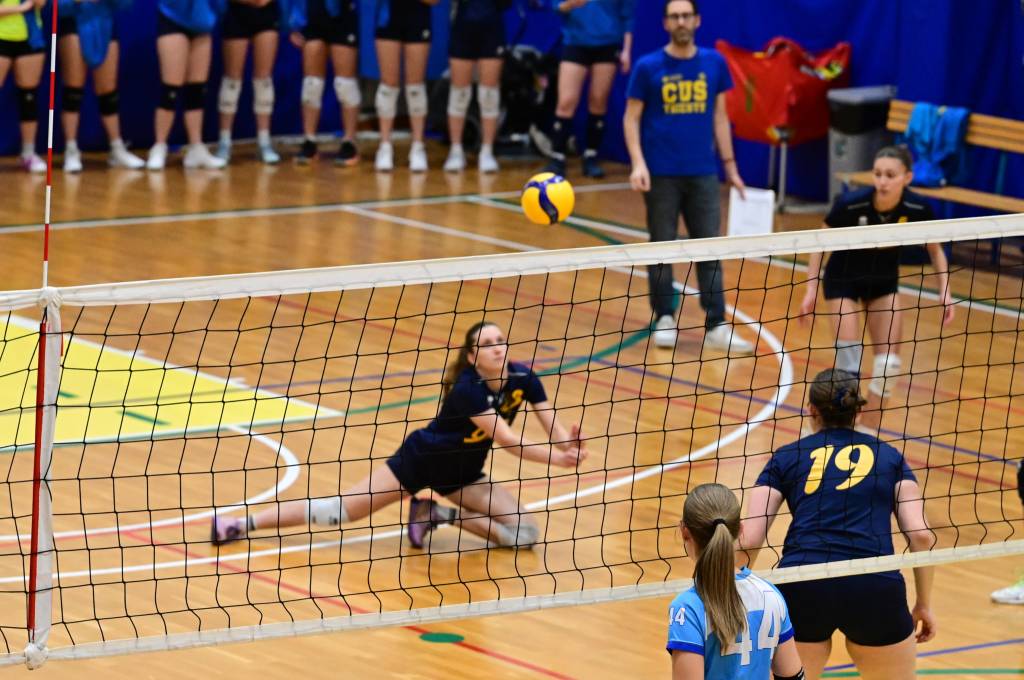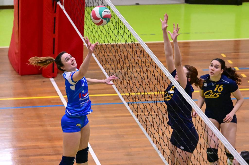 Nel secondo set c’è la partenza a razzo della Triestina che si porta sul 5 – 1 e costringe Coach Vivona a chiedere il suo primo time out. Le cose non cambiano e le padrone di casa continuano a dominare portandosi sul 9 – 2 e successivamente sul 12 – 4.. La partita va avanti a senso unico fino al 24 – 16 a favore della Triestina ma di colpo cambia tutto. Viviana Boria con un attacco dalla zona due conquista il 17° punto per il CUS che va al servizio.Le avversarie sembrano non poter reagire. Le universitarie si portano sul 25 – 24 ed hanno a disposizione il primo set ball ma la capitana Mullig commette un fallo di invasione portando le squadre sul 25 – 25. Le ragazze della Triestina vanno in battuta e con un net in servizio si portano sul 26 – 25 e poi, grazie ad un controattacco efficace, chiudono anche il secondo parziale sul 27 – 25.