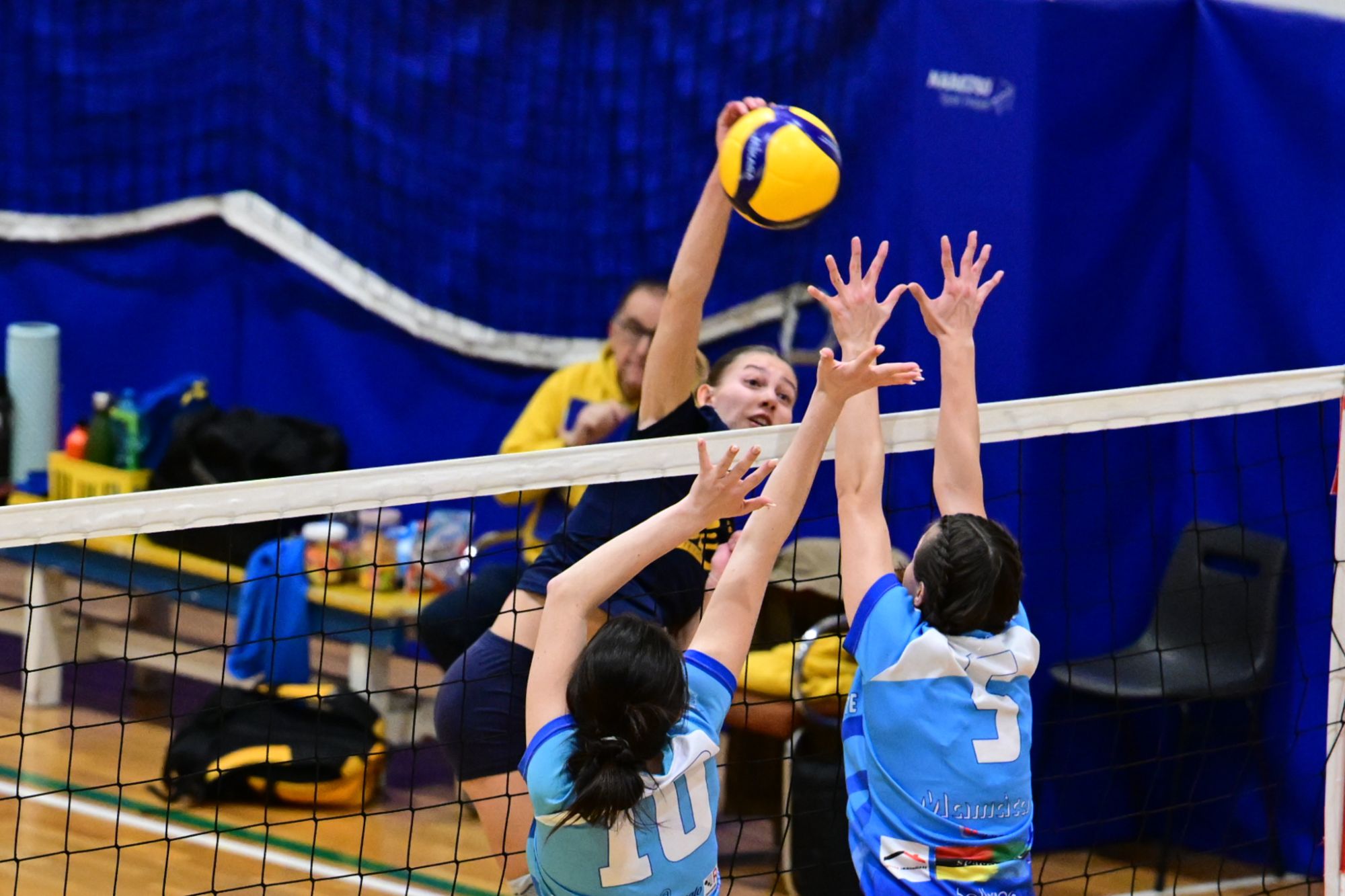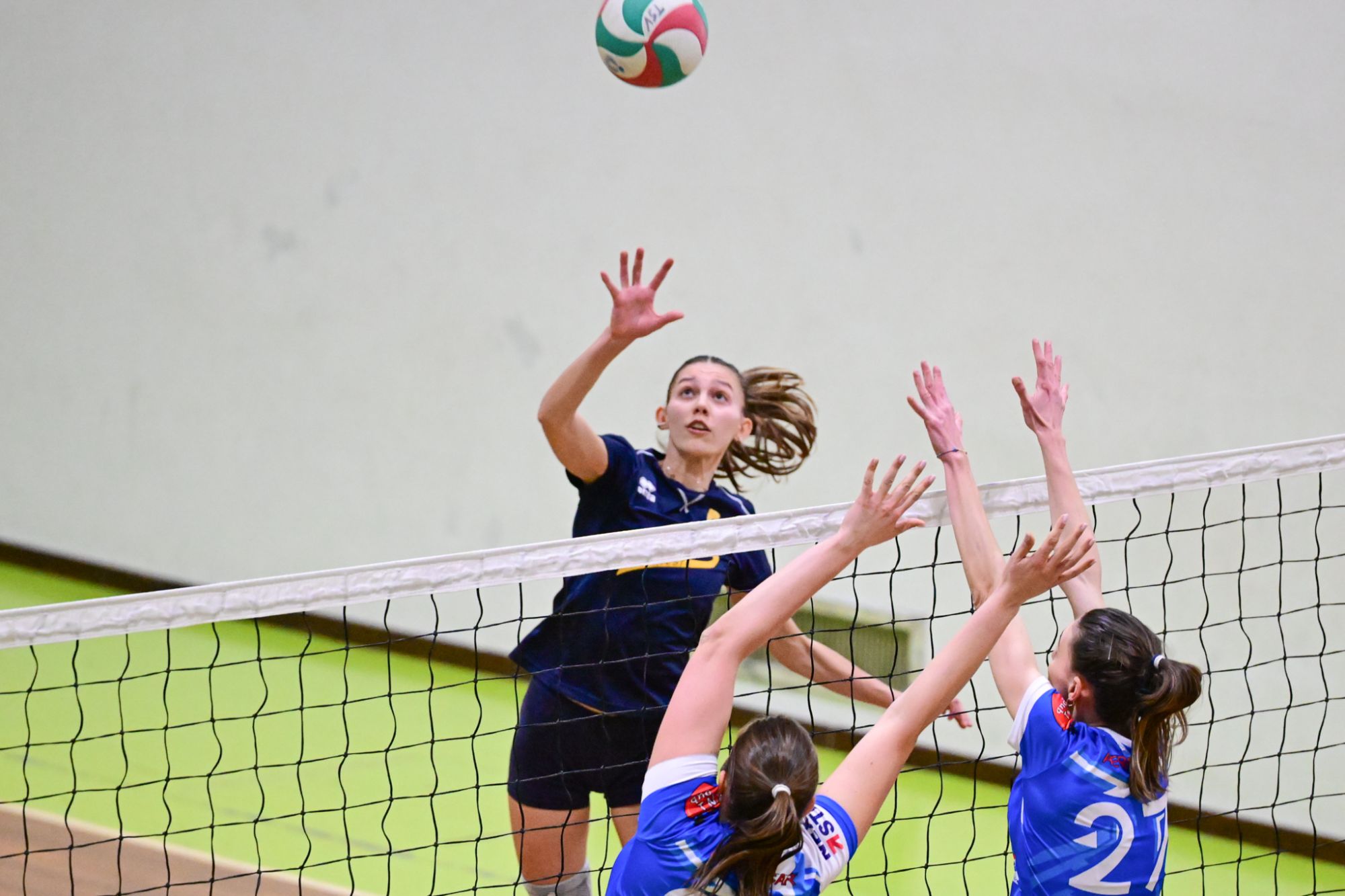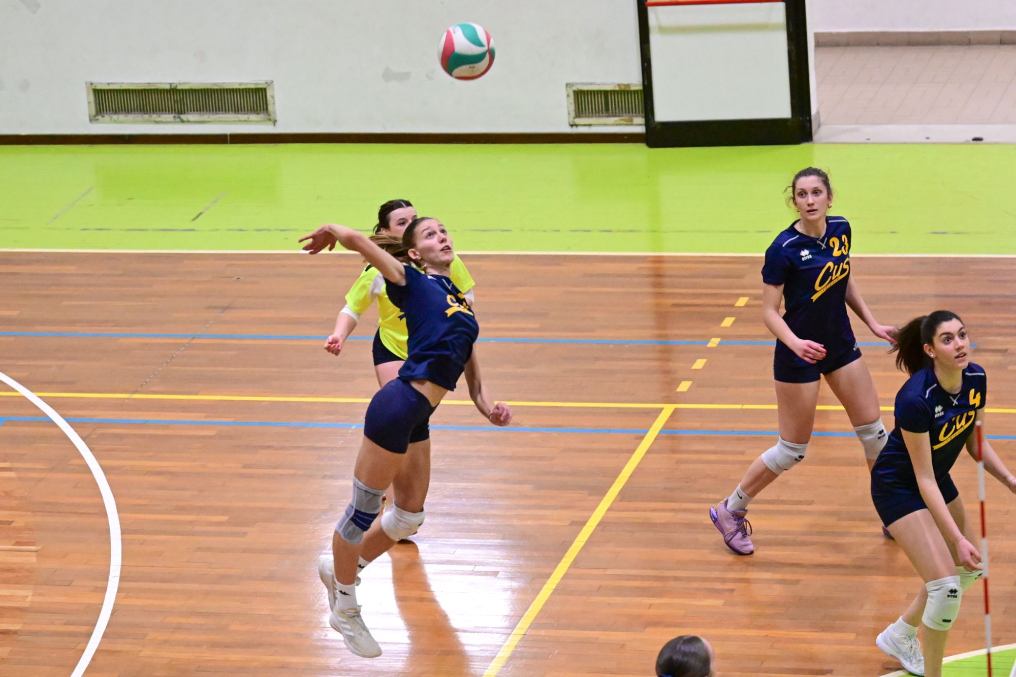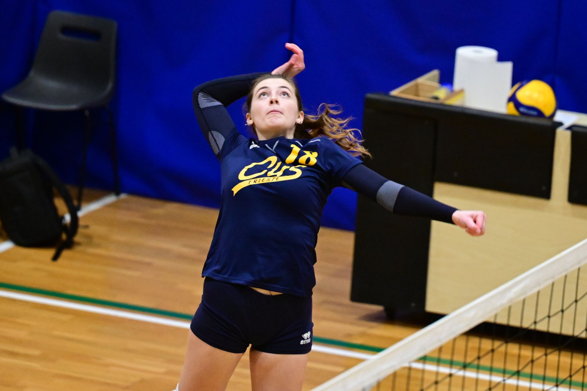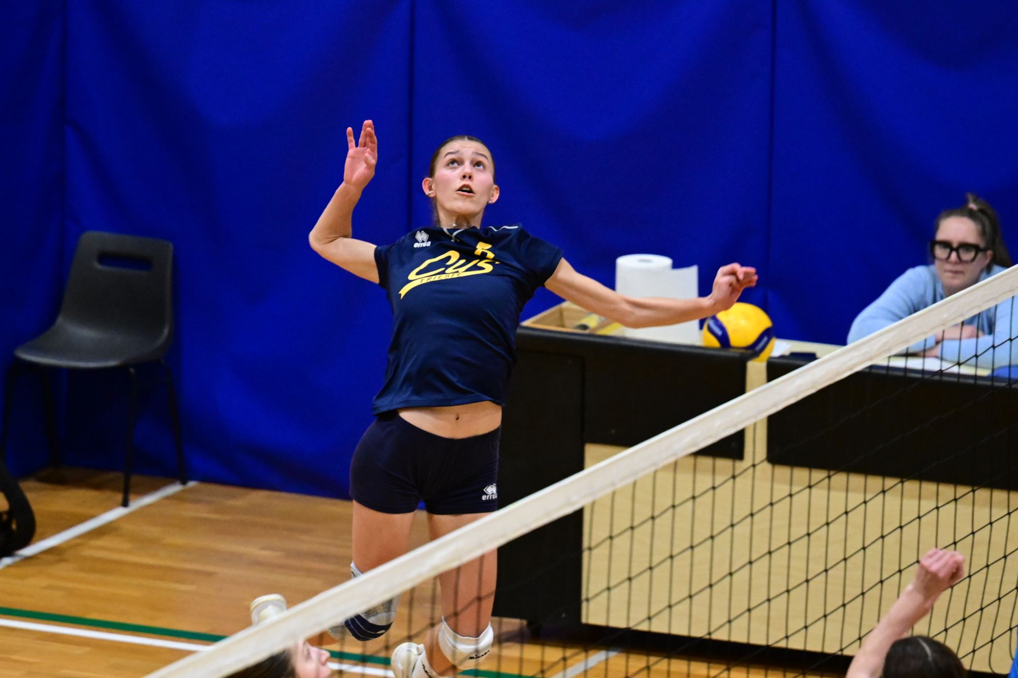 Nel secondo set c’è la partenza a razzo della Triestina che si porta sul 5 – 1 e costringe Coach Vivona a chiedere il suo primo time out. Le cose non cambiano e le padrone di casa continuano a dominare portandosi sul 9 – 2 e successivamente sul 12 – 4.. La partita va avanti a senso unico fino al 24 – 16 a favore della Triestina ma di colpo cambia tutto. Viviana Boria con un attacco dalla zona due conquista il 17° punto per il CUS che va al servizio.Le avversarie sembrano non poter reagire. Le universitarie si portano sul 25 – 24 ed hanno a disposizione il primo set ball ma la capitana Mullig commette un fallo di invasione portando le squadre sul 25 – 25. Le ragazze della Triestina vanno in battuta e con un net in servizio si portano sul 26 – 25 e poi, grazie ad un controattacco efficace, chiudono anche il secondo parziale sul 27 – 25.