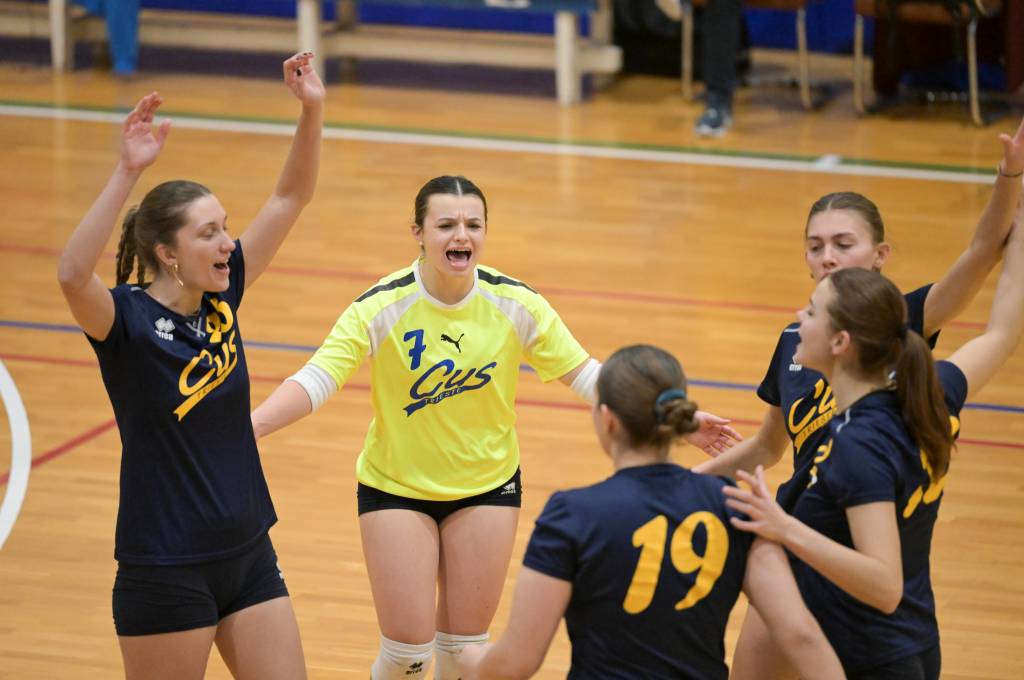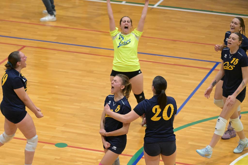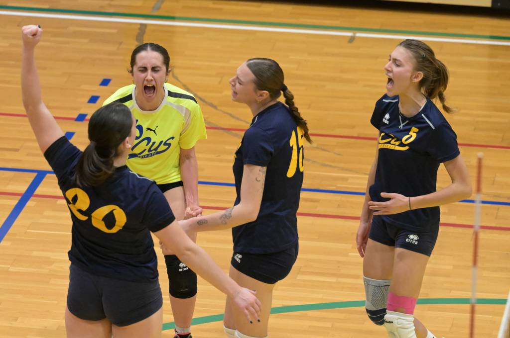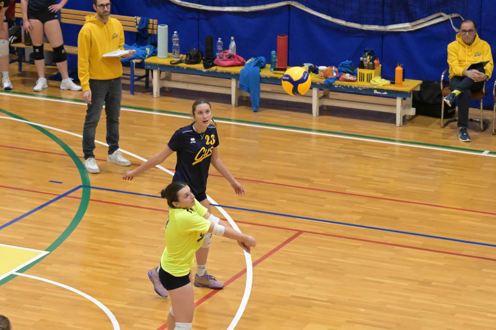 Nel secondo set c’è l’ottima partenza per le universitarie che si portano subito in vantaggio per 4–0 ed aumentano il vantaggio fino all’ 8–2 grazie alle buone battute di Marta Tomasella. Ma le ragazze del Centro Coselli non mollano e con un contro parziale di 5–0, grazie a qualche errore di troppo delle cussine si riportano sotto. Immediata la risposta delle universitarie che mettono le cose a posto volando sul 13–8. Sul punteggio di 15–9 coach Cutuli chiama il suo secondo time out, ma il set è compromesso e le cussine non hanno alcun problema a chiudere il set sul 25 –14.