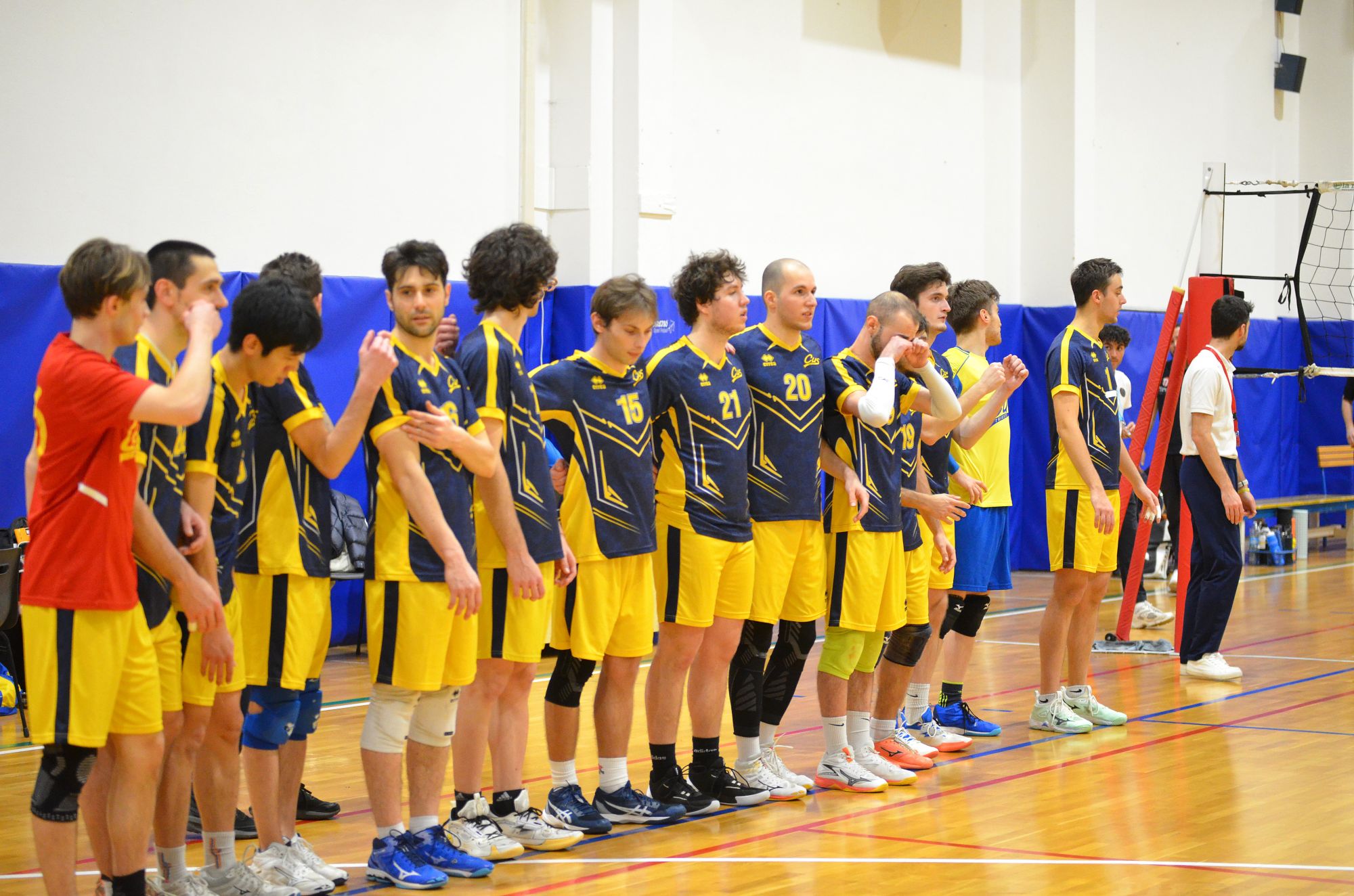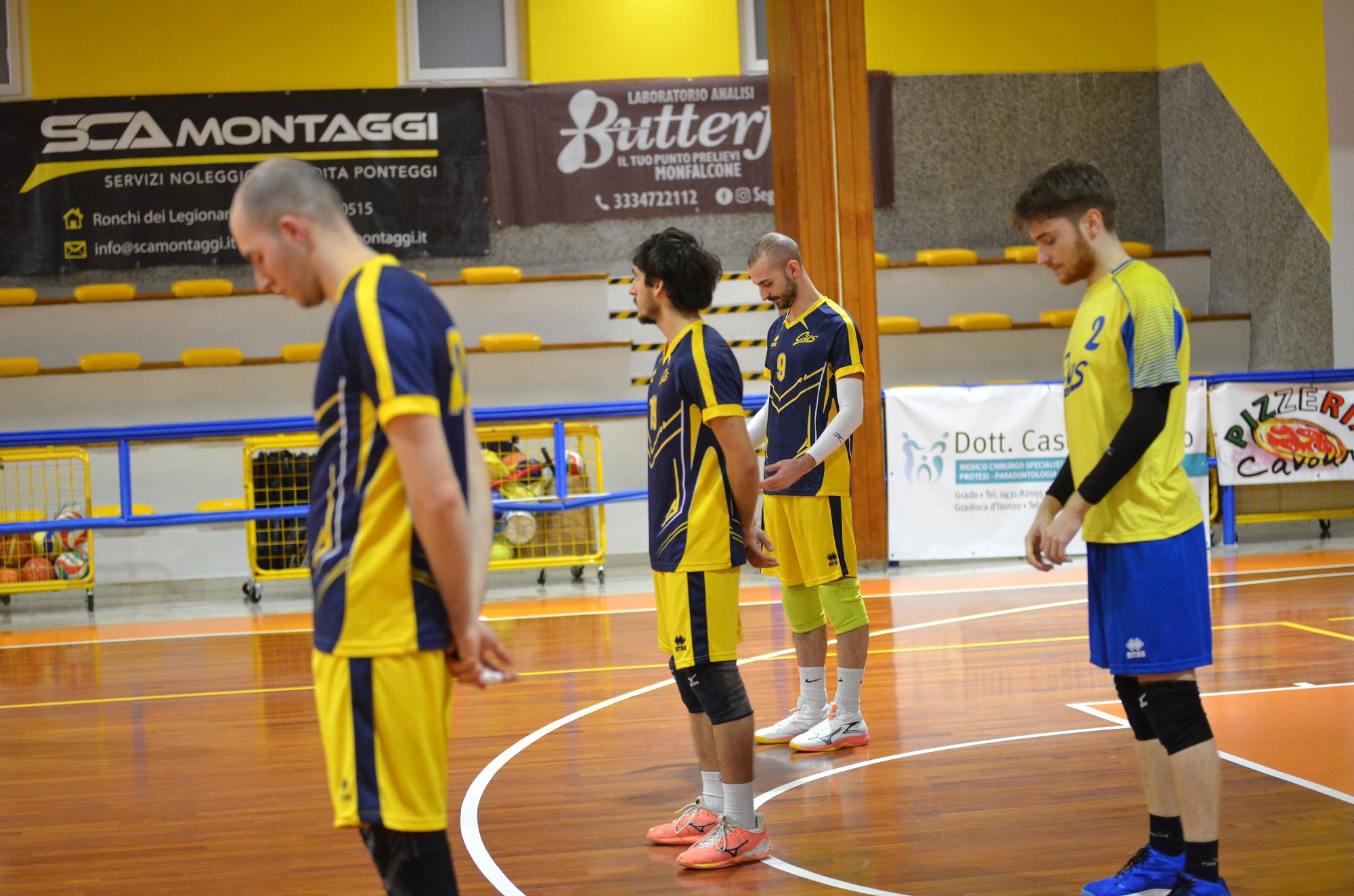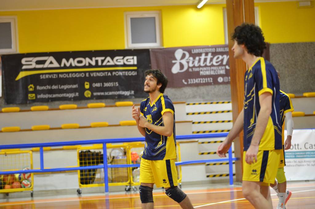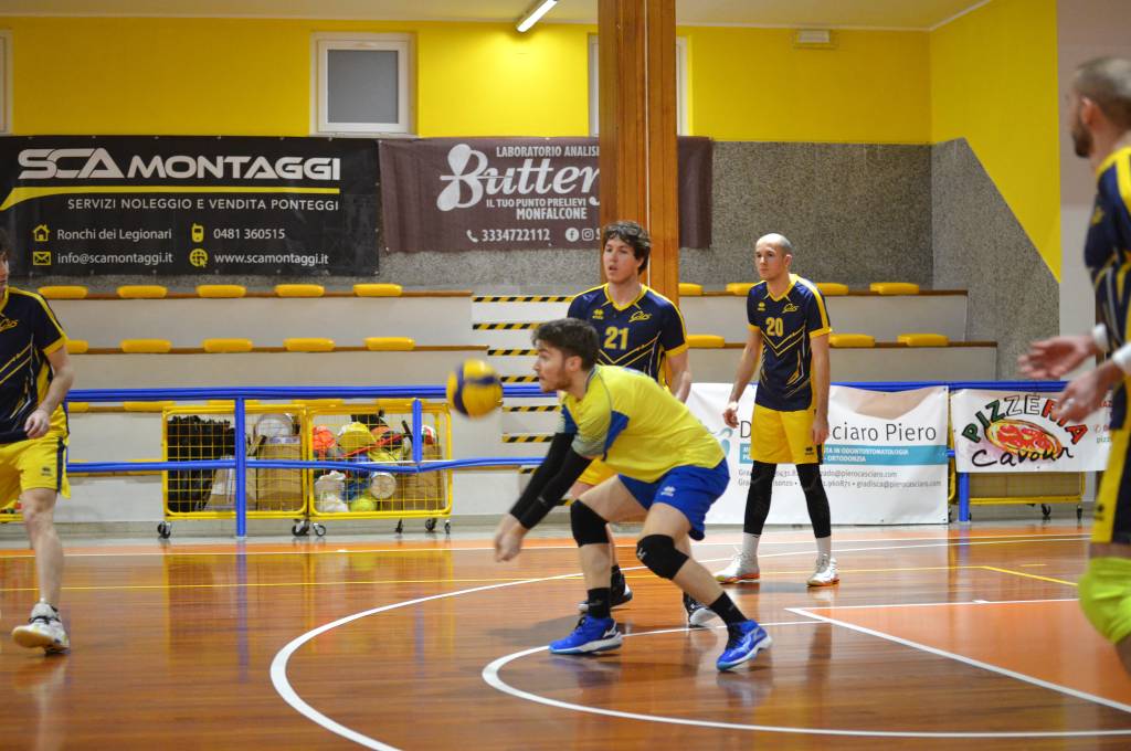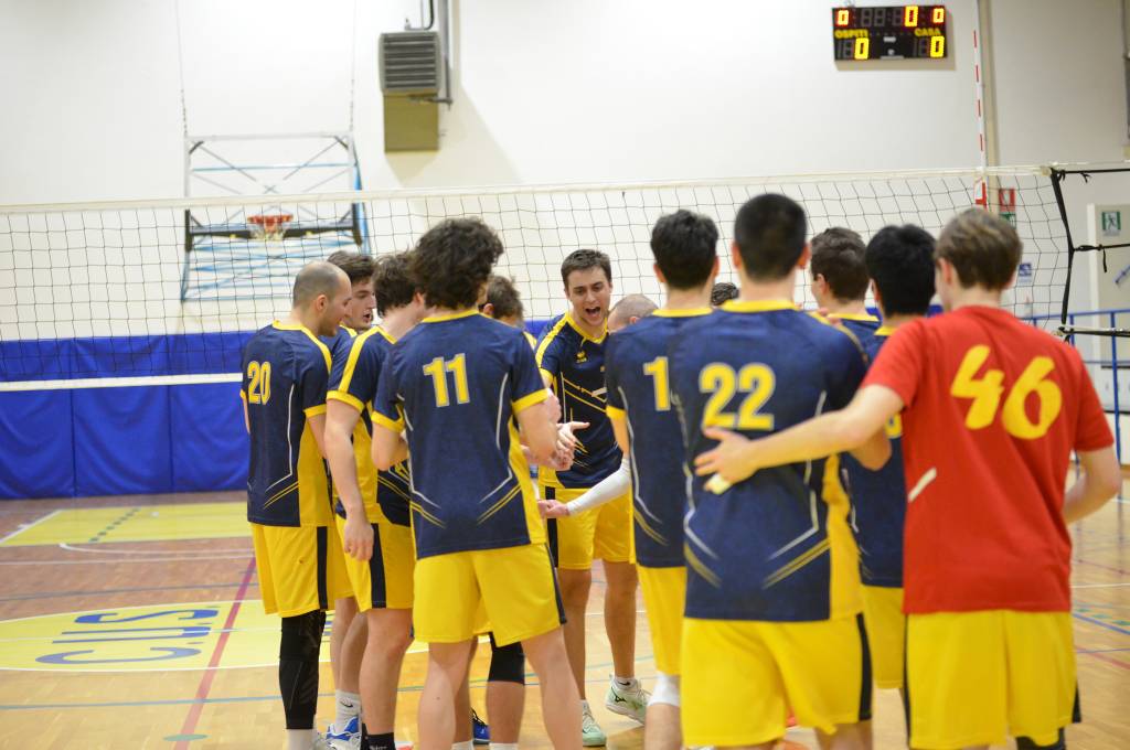 Nella prima giornata del Girone della Retrocessione del Campionato Regionale di serie D, gli universitari incontrano in trasferta la SCA Montaggi Fincantieri di Monfalcone. Coach Seppi parte con Gianmaria Palma in palleggio, Pietro Mihelj in opposto, Elia Millo e Tommaso Piscitelli in banda e Filipp Dassoni e Massimo Di Cosimo in centro e con Luca Schiroli come libero.