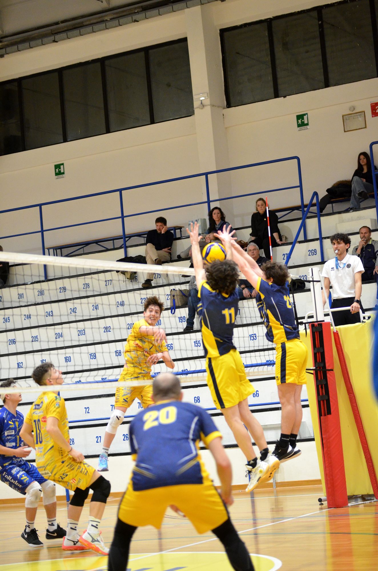 Nel secondo set si inizia sul filo dell’equilibrio, 4 – 4. Poi i padroni di casa vanno avanti di due punti sul punteggio di 8 – 6 e poi di nuovo punto a punto fino al 15 – 13. Poi ancora una volta i cussini fanno una serie di errori di fila permettendo al Fincantieri di portarsi sul 19 – 13, costringendo Coach Seppi al time out: è però troppo tardi e i padroni di casa vincono anche il secondo set per 25 – 15.