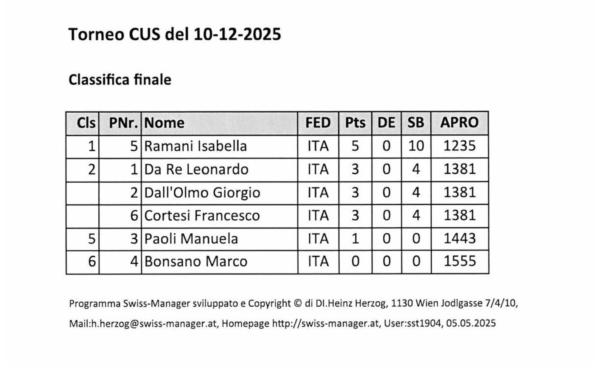 TORNEO DI SCACCHI 2025